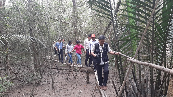 Du khách trải nghiệm đi cầu tre xuyên rừng
